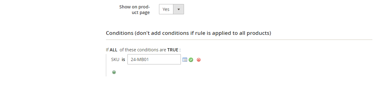 - Show on product page: Select yes/no to turn on/ turn off the product page and add rule for product if you turn on show on product page mode.