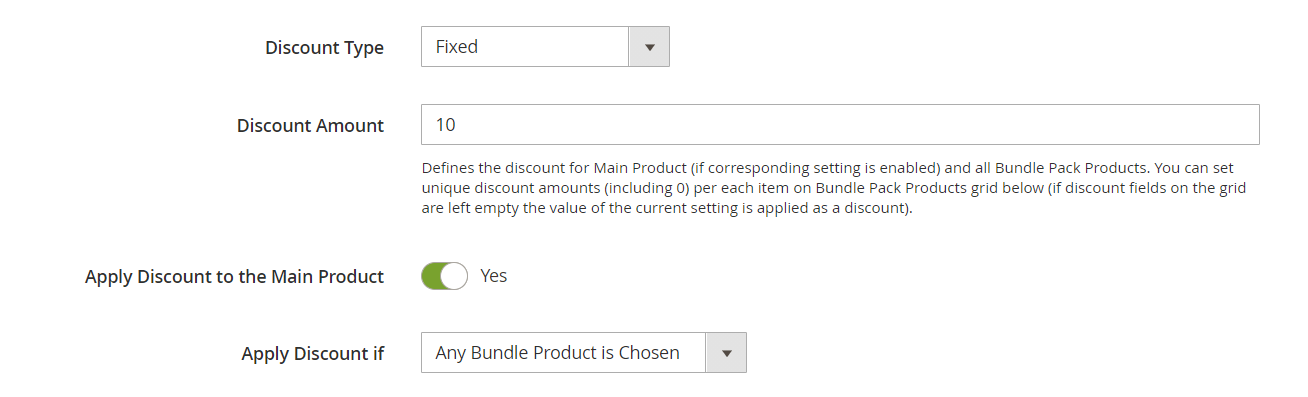 Apply Discount to the Main Product - enable the option to apply the discount to the main product in a bundle pack.