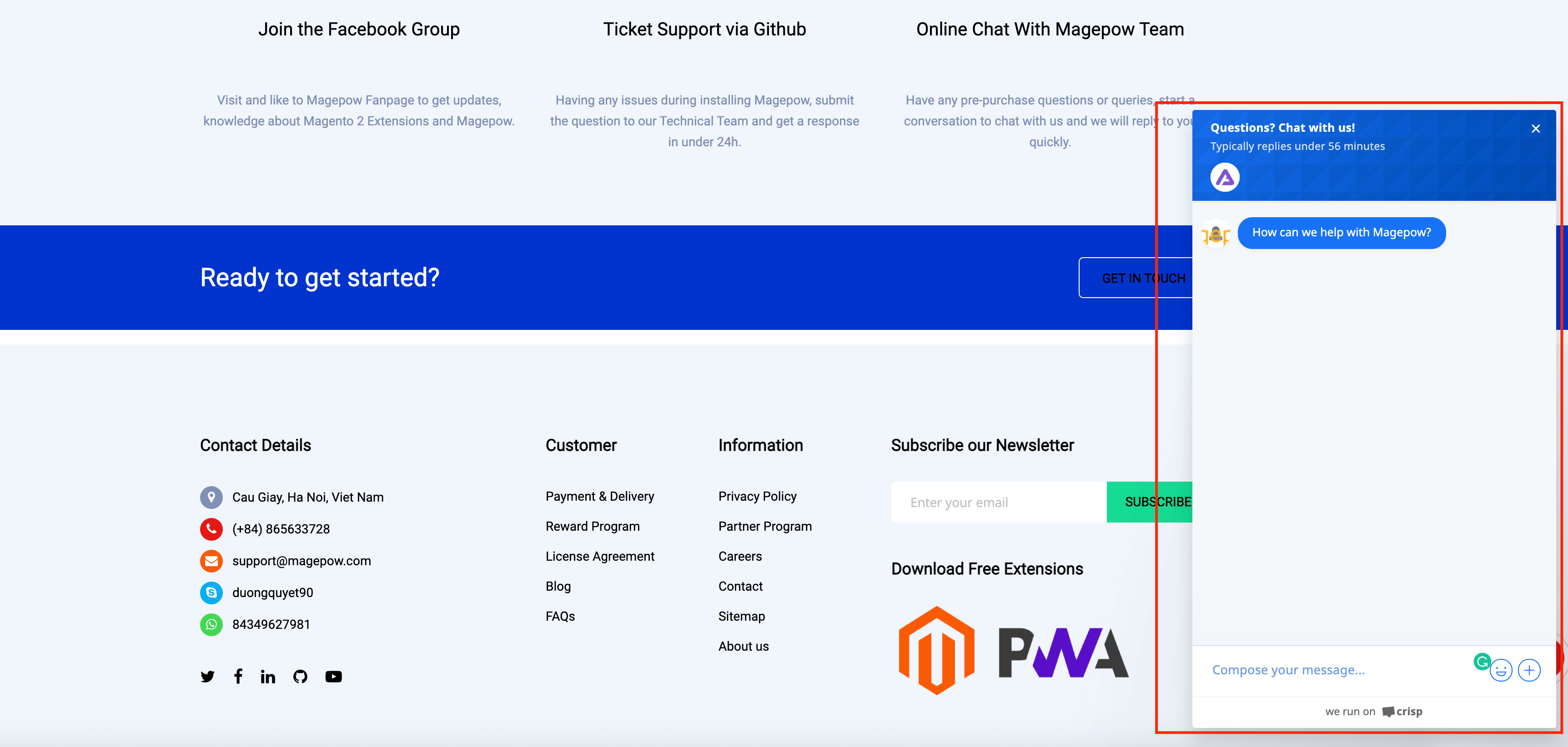 InStore > Configuration > Magepow > Crisp Chat