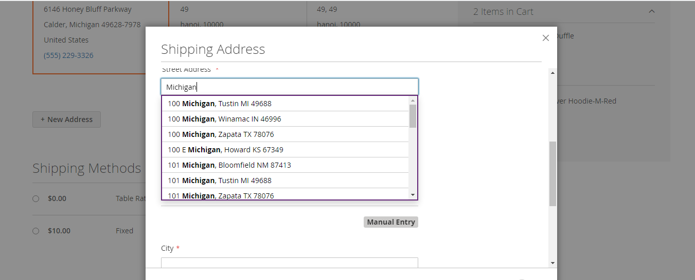 If you are already logged in, click on "+ New Address" and then select the country you want to search, then enter the address you want to search in the Street Address section.
