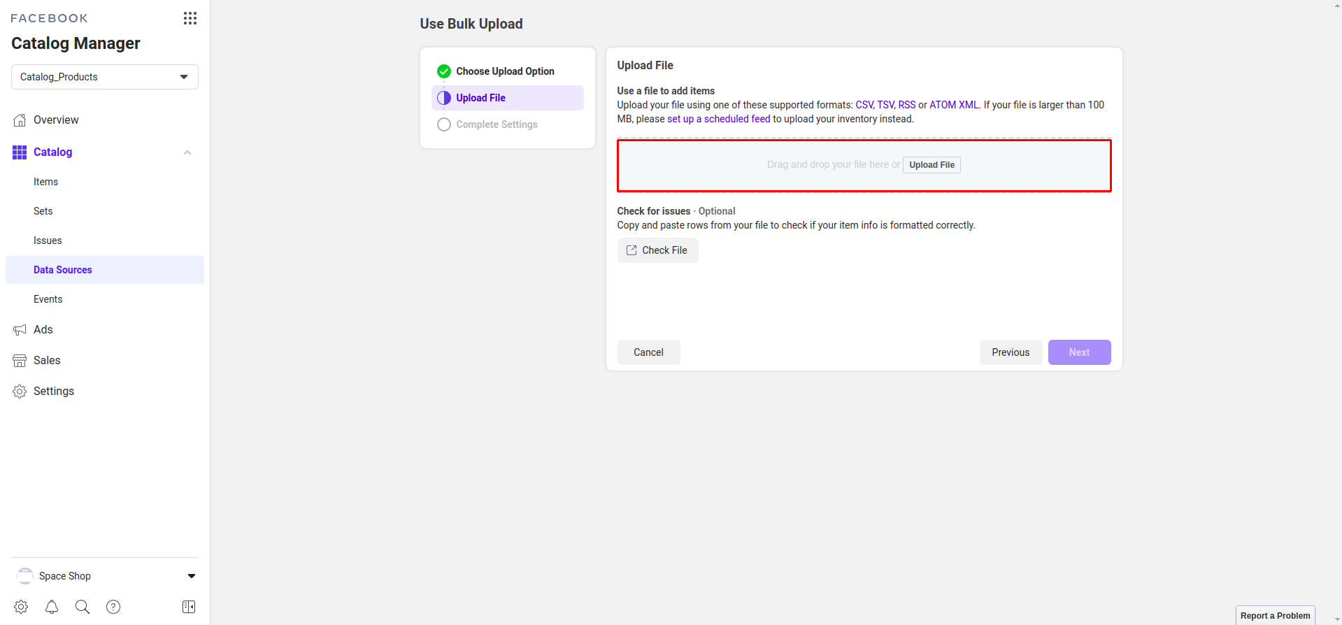 Step 5: Choose file upload.