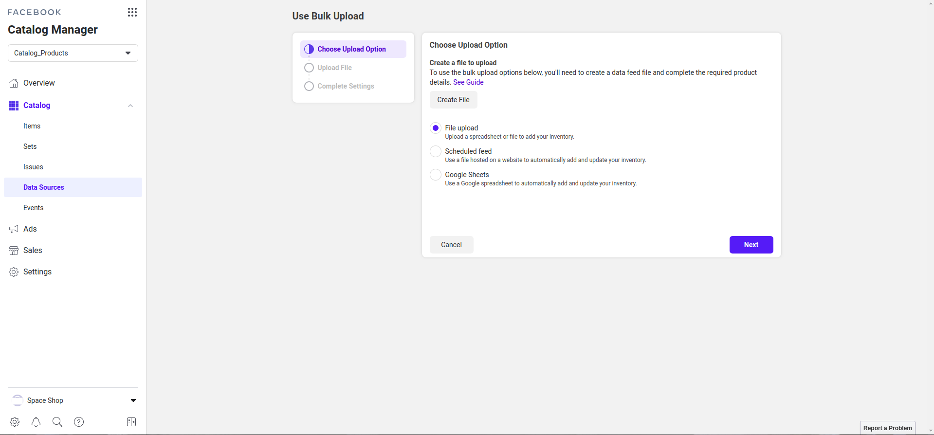 Step 4: Choose upload option.