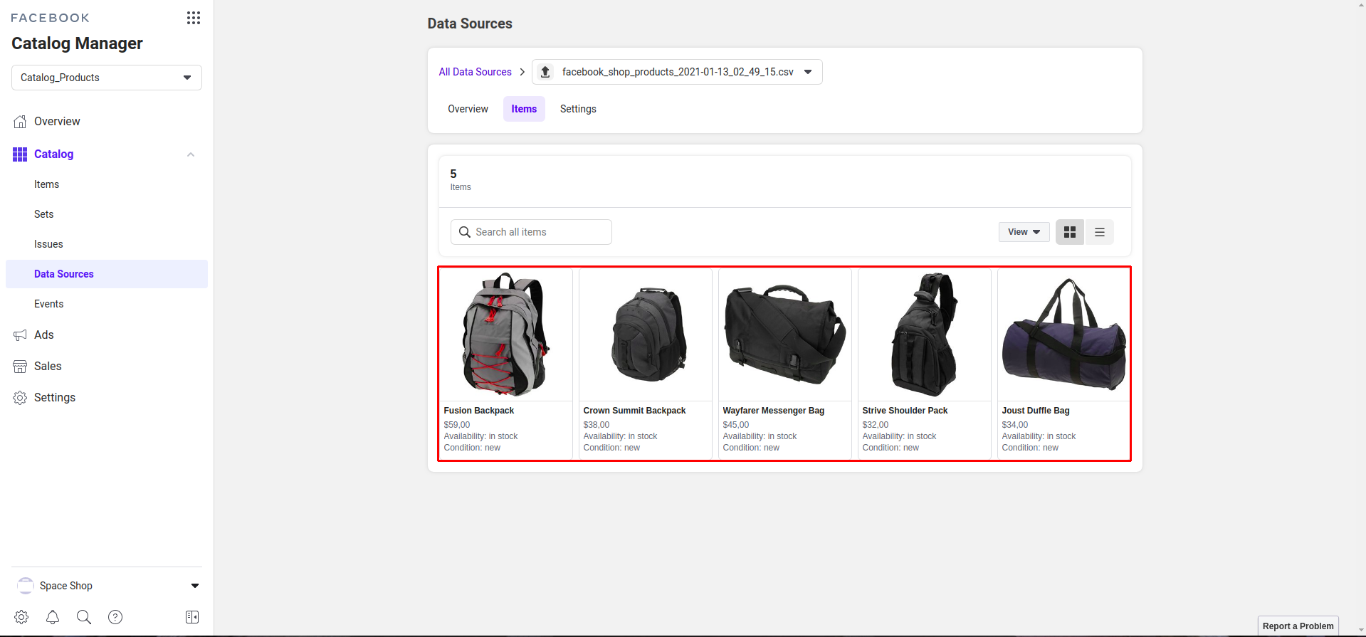Step 6: Complete settings, find and verify uploaded products as shown below.