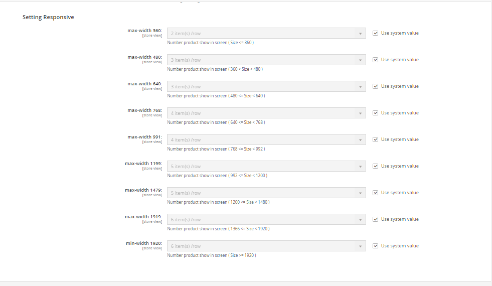 You are free to set how many items/ row for each screen from screen size 360px to screen size 1920px.