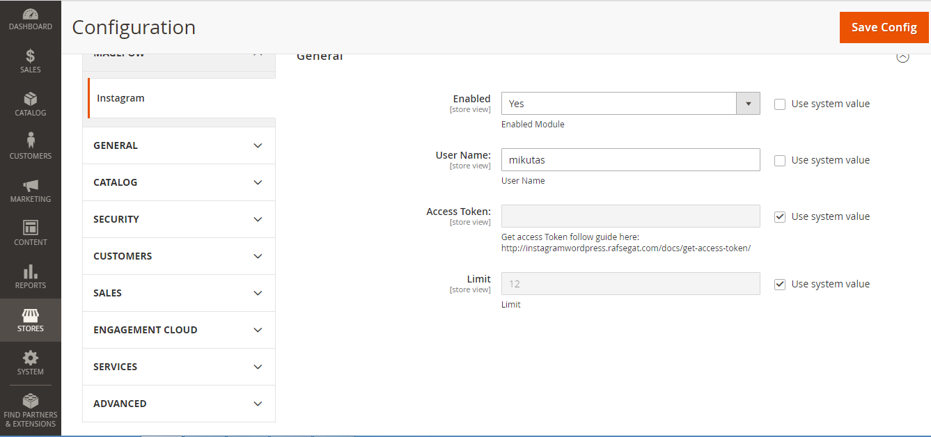 - Store view: Select kind of store view which will show your instagram widget