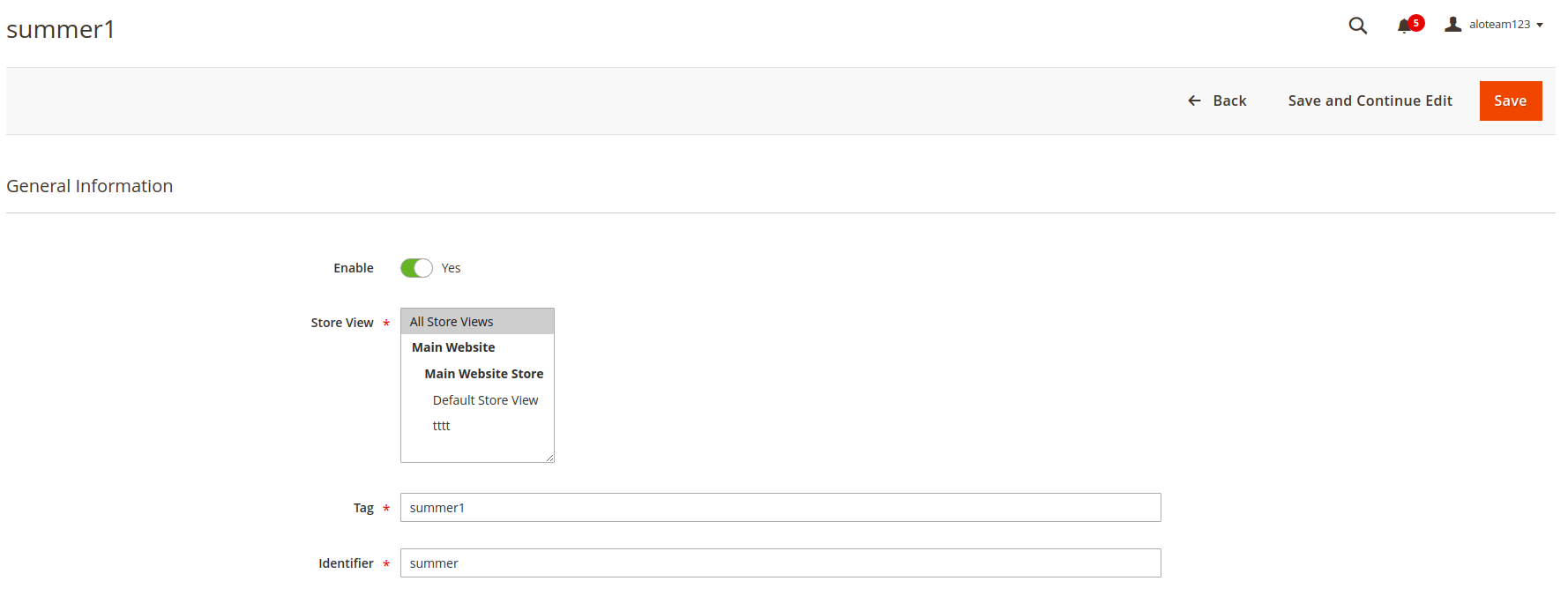 After enabling the module, we will setting the product tags module. In Admin Panel > Stores > Settings > Configuration > Magepow > Product Tags