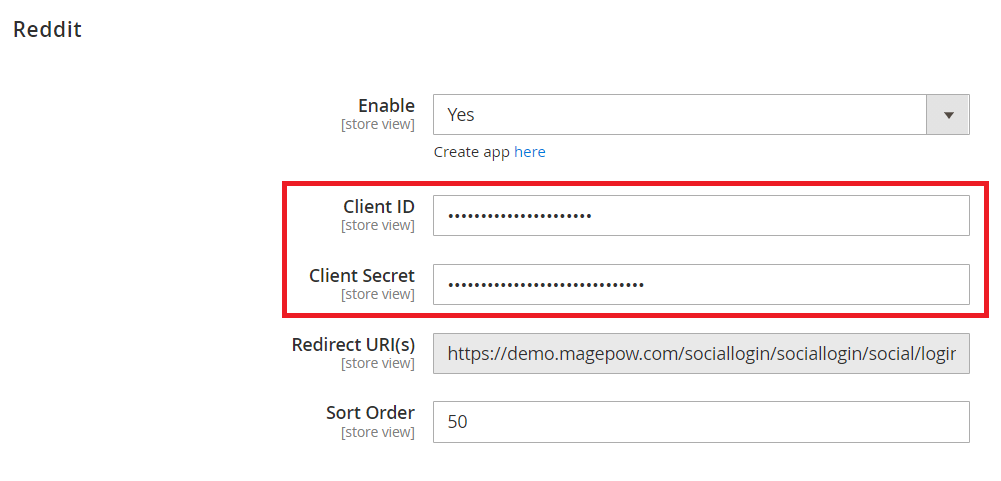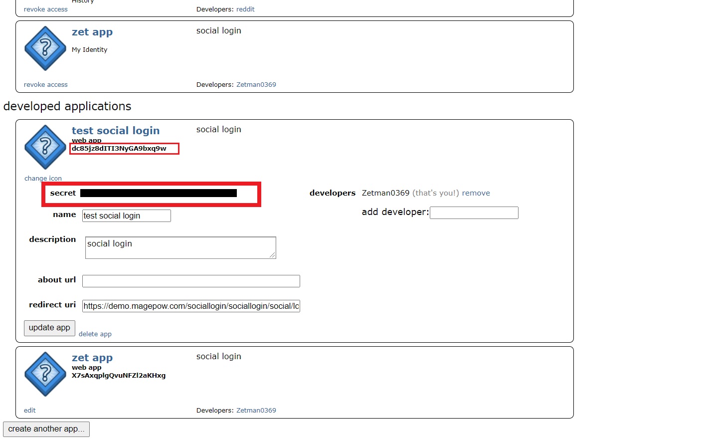 Enter app's name, choose web app, copy Redirect URI(s) in extension configuration in magento admin and paste to redirect uri field then click create app