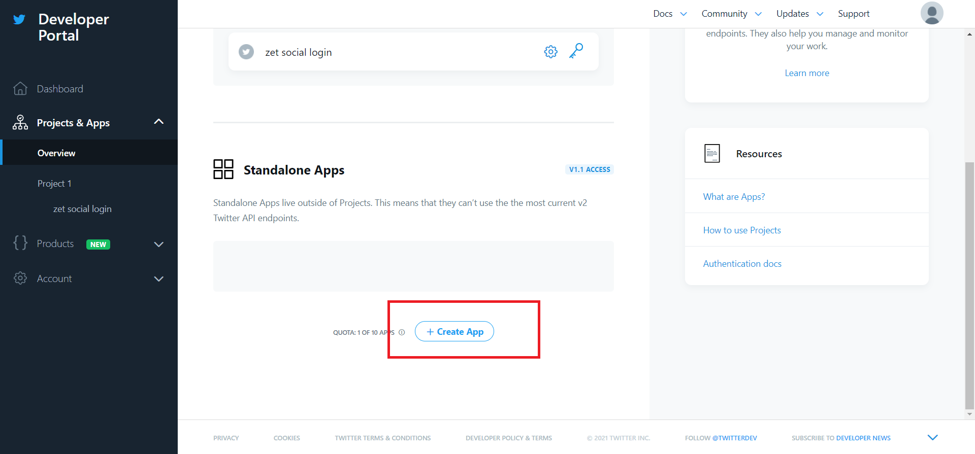 Login Twitter or create a new Twitter account. After that, click on Create App at the bottom of page