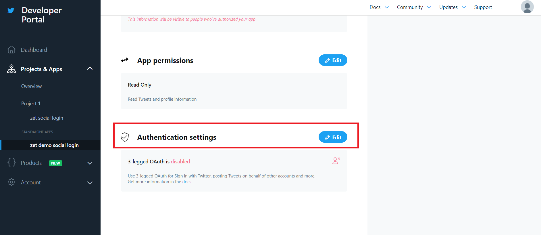 From the app Settings, role to the bottom, you will see Authentication settings, click Edit