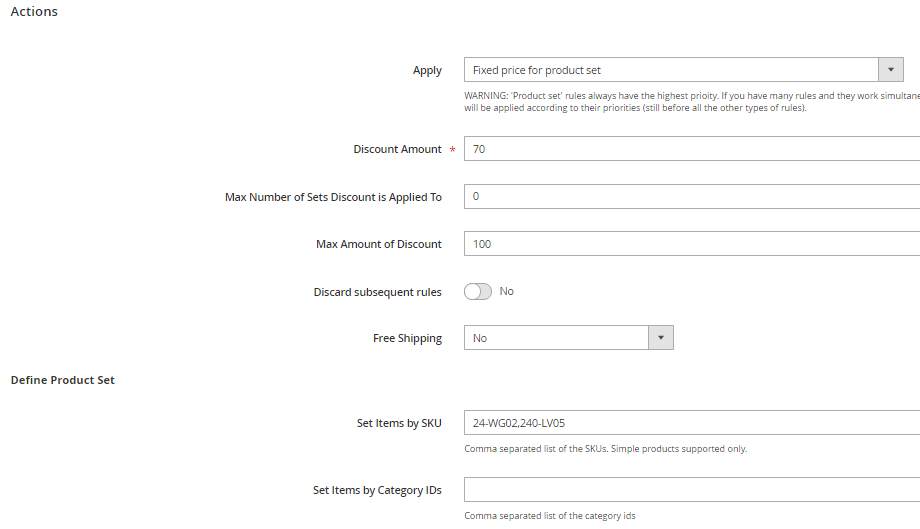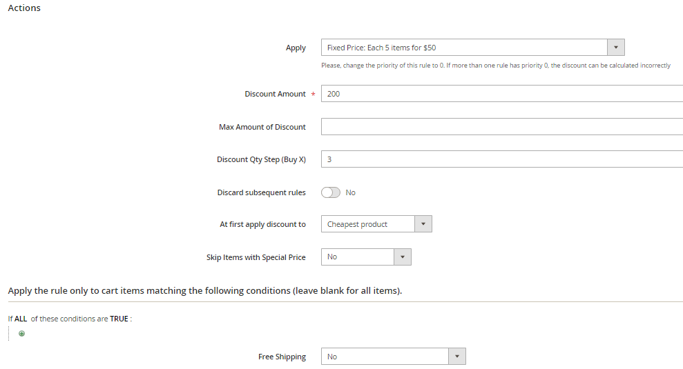 Discard subsequent rules - enable this option to stop other rules with lower priorities if this rule is applied. We don't need this for our promotions, so we set to 'No'.