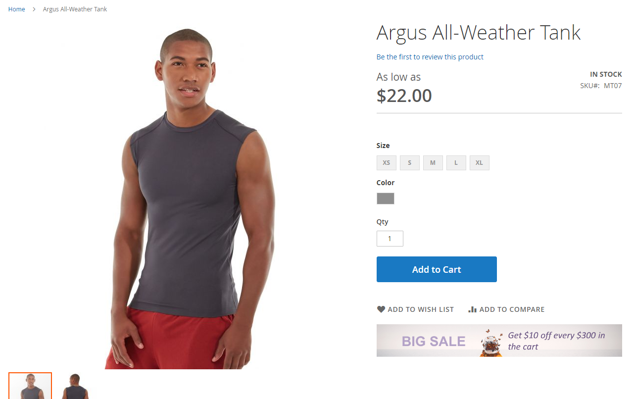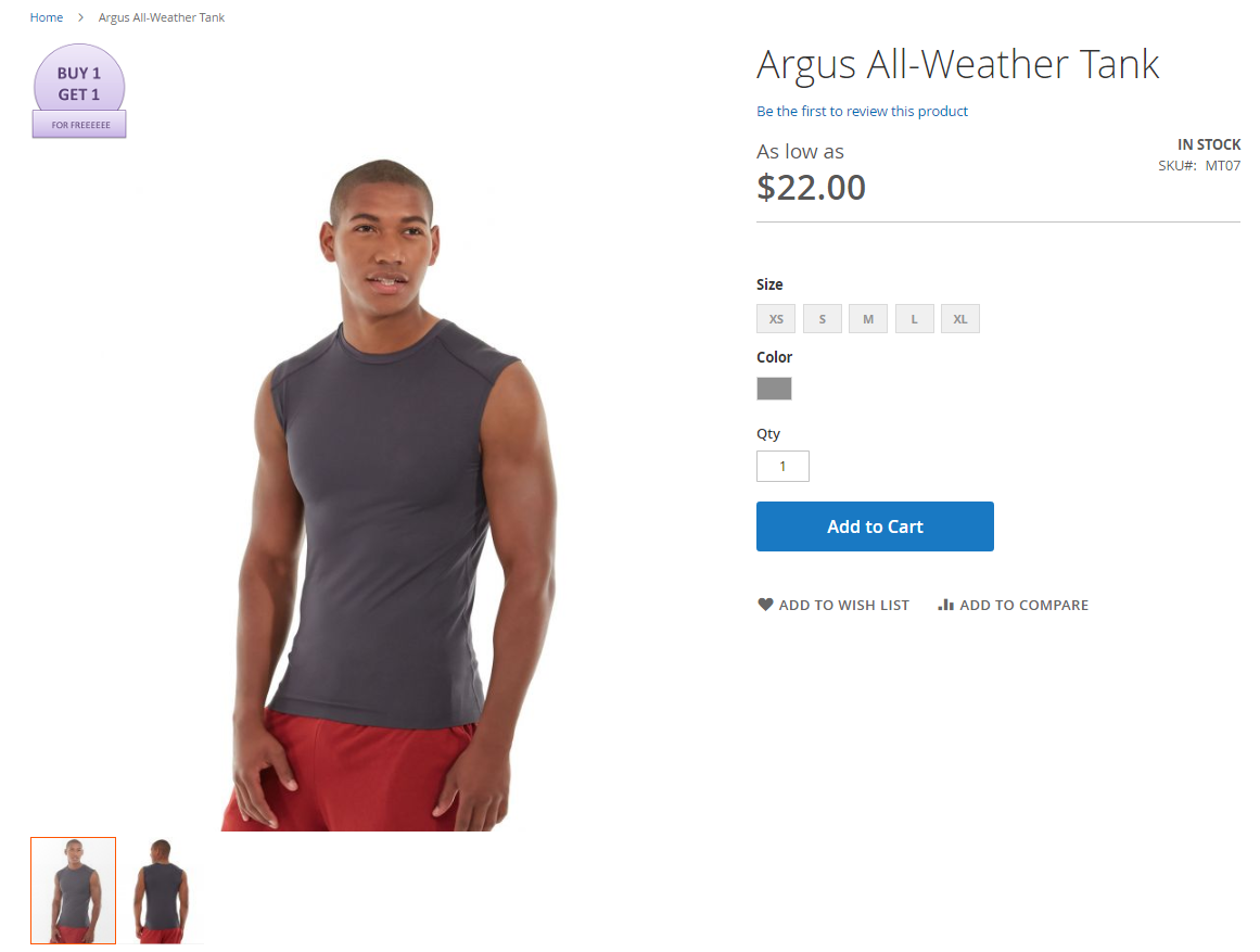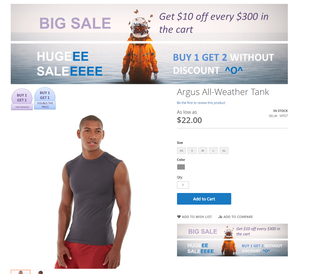 I created a promo rule, that offers a set for $50. The set is comprised of 1 LifeLong Fitness IV and 1 cheapest product from Watchs category: Aim Analog Watch.