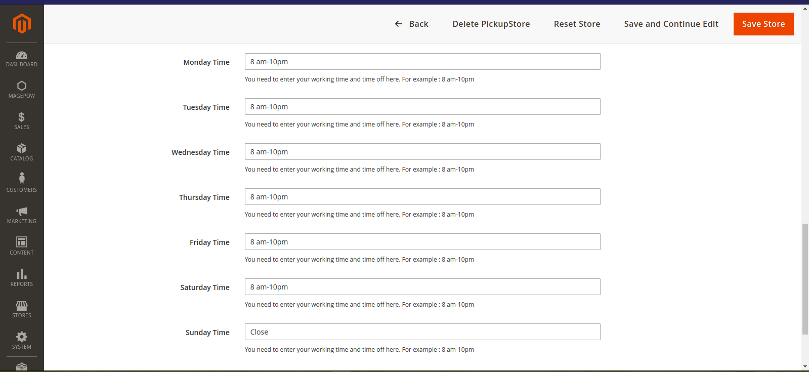 Come in Admin Panel > Magepow > Pickup Store Locator => Manage Stores => Add New Store Locator .