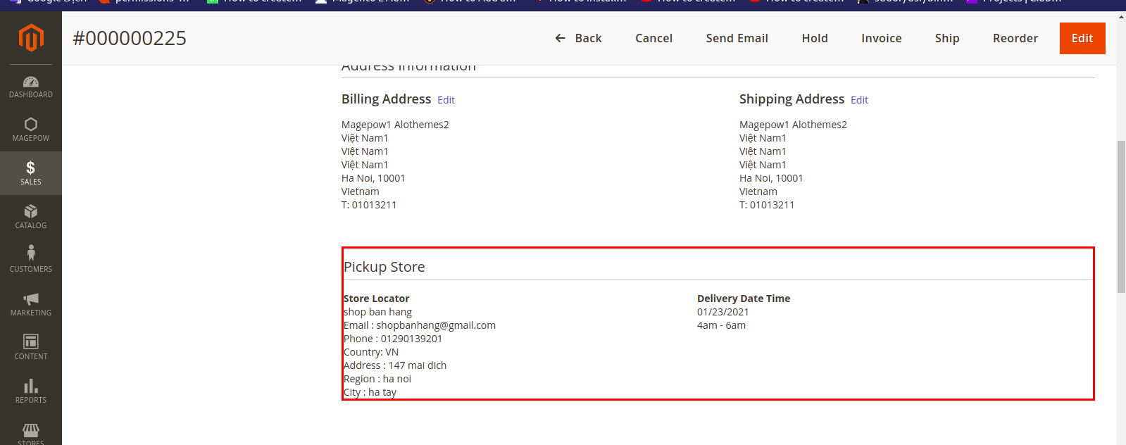 + The results after the customer uses the pickup store is displayed in the customer's warehouse section